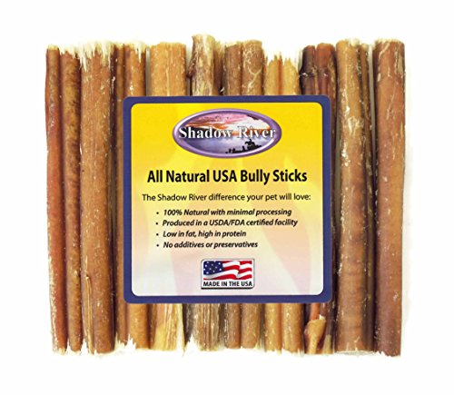 -. Feature : MADE IN USA - Proudly sourced from premium USA raised beef and made in a USDA approved facility in the USA / FOR SMALL TO LARGE DOGS AND PUPPIES - Our 6 inch Thick bully sticks average 1/2" to 3/4" thick / ALL NATURAL CHEWS - No additives or preservatives, low in fat, high in protein, completely digestible / IMPROVES DENTAL HEALTH - Chewing action helps remove harmful plaque and tartar from your dog's teeth / LONG-LASTING TREATS - Provide extended gnawing and chewing pleasure for your dog or puppy