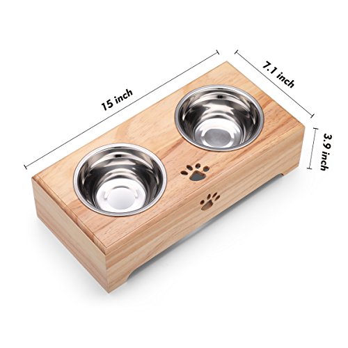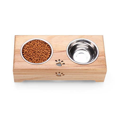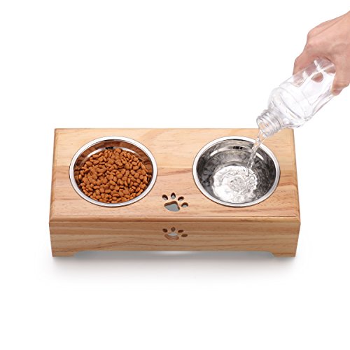 ?Do you have a pet that spills food and water all over the floor when eating?? Or are you worrying about your pet bowl scratching the floor?Our pet feeder is designed to solve these problems. It is a beautiful and stylish design, double design , convenient for busy pet owners,it can be as a water dispenser or as a food bowl. Give your pets a more enjoyable meal time with our bowl feeding Bowl, Safe to use and easy to clean .Come to place an order here! ? Feature -Sturdy and cute design. The pet feeder doesn't have detachable parts, so it is sturdy.? The bowls are fixed inside the bamboo table, the pet will not move the bowls and damage the floor.? The cat claw and dog bone design give you a fun and playful feeling -This raised elevated pet feeder is great for both cats and dogs who have arthritis, neck or back problems, or who have difficulty swallowing and digesting their foods. And it allows your dog or cat to have a healthy posture while eating which helps improve your? pets digestive health. It is perfect for your cat or small dog -the smooth mat and removable bowls are really easy to clean. And the mat is washable and not permanently deformed even under the external force.? So you can wash it as you like -You can use one bowl for water feeding and another for food. Or you can feed two pets, one food bowl per pet. ? Specification Name: Gelinzon Pet Double Bowl Material: Stainless Steel Pine woodimported from New Zealand Color: Natural Usage: Pet Feeding Drinking ? Maybe there can be certain amount of error of the manual measurement. 0 |