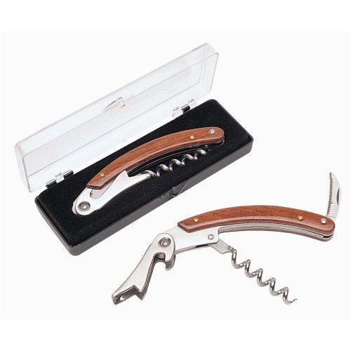 Product Description This high quality stainless steel corkscrew features a beautifully finished rosewood handle and built-in foil cutter with serrated blade. Come packaged in attractive hard plastic display box. 0