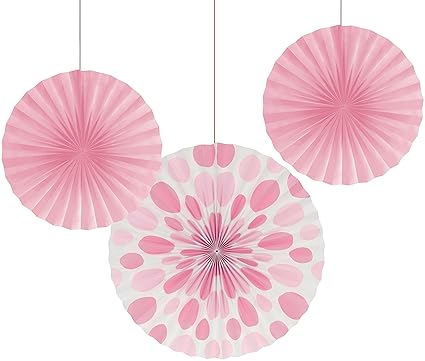 [Product Information]- 2 Solid color paper fans and 1 polka dot paper fan in Classic Pink