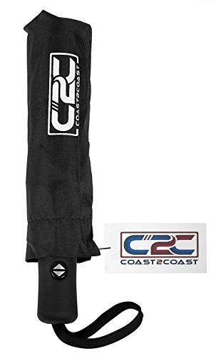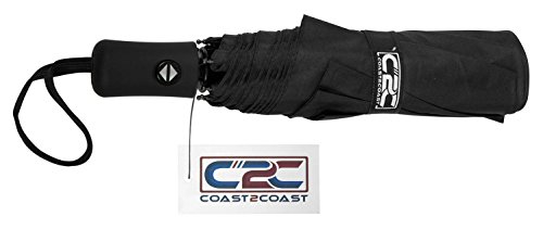 -. Binding : Misc. -. Brand : Coast2Coast -. Color : Black -. EAN : 0646437615914 -. Feature : Automatic open, auto close quick release button makes one handed umbrella operation effortless / Small and lightweight umbrella; great for travel / Windproof and waterproof design will never fold inside out or allow water to drip through the umbrella / Aluminum frame and fiberglass tips provide ultimate durability and reliability; unbreakable / 38 inch diameter when open; 11 inch compact length umbrella when closed -. IsAutographed : 0 -. IsMemorabilia : 0 -. Label : Coast2Coast -. Manufacturer : Coast2Coast -. MPN : 4415135 -. PackageQuantity : 1 -. PartNumber : 4415135 -. ProductGroup : Sports -. ProductTypeName : SPORTING_GOODS -. Publisher : Coast2Coast -. Size : Small -. Studio : Coast2Coast -. Title : Coast2Coast Compact Travel Umbrella Black -. UPC : 646437615914