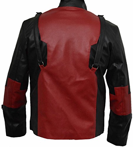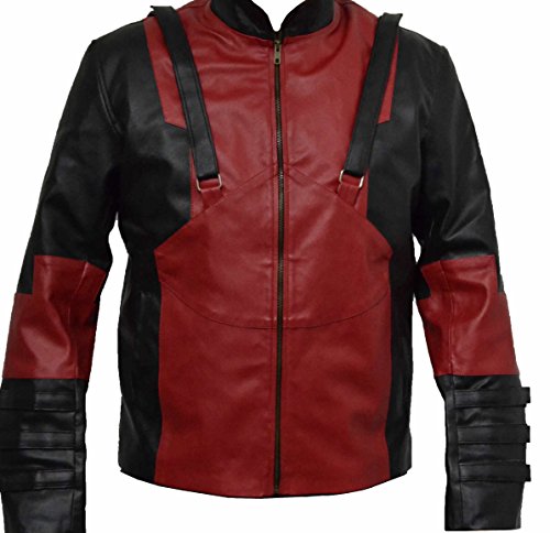 Product DescriptionMen's Deapool Straps leather Jakcet Made of High Quality Sheep Leather,This Jacket has a Straps on Shoulders and dual color Red and Black Great regular fit Jacket0