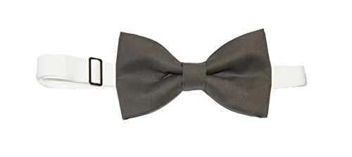 -. Feature : Adult size (Ages 12 years and up) ~ Bow Tie Measures 4.5" Long 2.5" Wide / Pre-tied cotton bow tie is attached to a white cotton twill neckband / Neckband adjusts to fit 15" - 23" neck sizes / Pewter Gray / Made in the USA