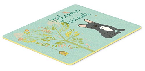 Caroline's Treasures BB7632JCMT Welcome Friends Black French Bulldog Kitchen Mat, 24" x 36", Multicolor