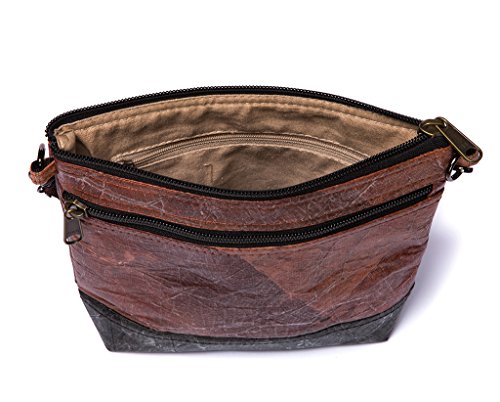 -. Feature : DURABLE LEAF LEATHER - Leaf leather is a plant based non leather alternative. Our Tree Tribe Leaf Leather accessories are made from Teak leaves, with a thin strong outer laminated seal to make them durable and water resistant. / ANIMAL FRIENDLY - We use tree leaves instead of actual animal leather. All of our leaf leather accessories are vegan friendly. Animals thank us everyday for this :) / FUNCTIONAL - Adjustable shoulder strap size can be adjusted from 28" to 53" (measured top of bag to top of strap). There are 2 zipper pockets - 1 inside and 1 outside. Size of bag: 9.0" x 7.9" x 2.2" (23cm x 20cm x 5.5cm) / UNIQUE - These are handmade, and we use 100% real leaves, so every design is naturally one of a kind. Every leaf is different, so the leaf structure may differ from the photos. / WE PLANT TREES - Tree Tribe is an outdoor lifestyle brand that plants 10 trees on every sale. Inspired by the beauty of the natural world, we are dedicated to creating cool products with eco friendly materials, while giving back to the Earth on every purchase.
