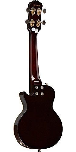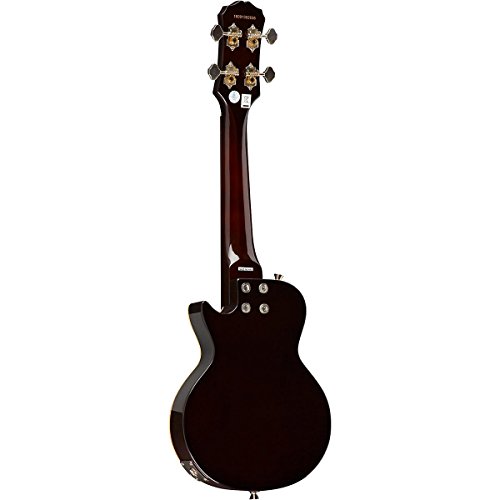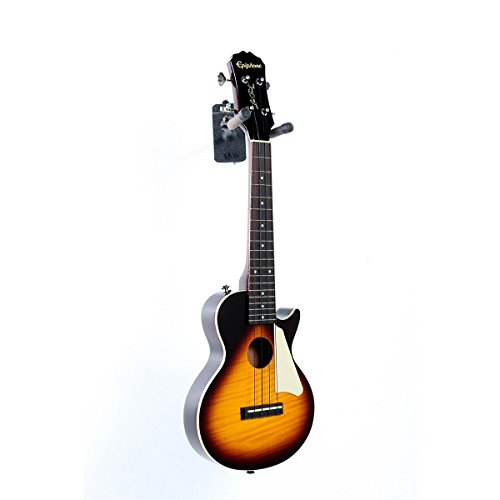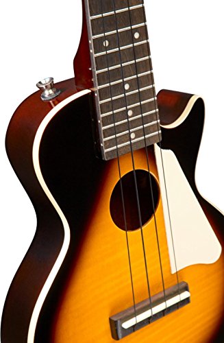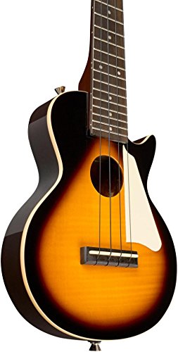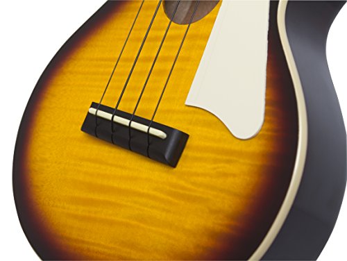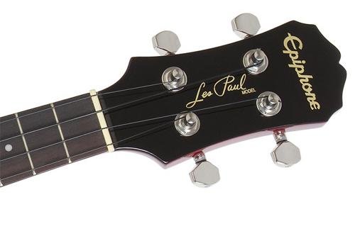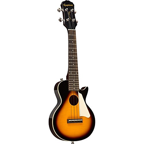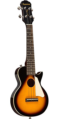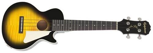 ReleaseDate : 2012-03-19 Studio : Epiphone Publisher : Epiphone Binding : Electronics Product Description Real Les Paul Styling in a Ukulele! Long known for it's history of making great Les Paul guitars, Epiphone expands upon that knowledge and experience with the Epiphone Les Paul Acoustic Electric Ukulele. This great ukulele from Epiphone is sure to turn heads with its instantly recognizable single cutaway body, flame maple top, and classic pickguard. Epiphone Les Paul Acoustic Electric Ukulele Features Mahogany body with AAA flame maple top Built in high-quality, piezo film pickup located under the saddle Mahogany neck and rosewood fingerboard with 19 frets 14:1 geared machine heads won't slip and holds their tune Includes gig bag for easy transportation Like a traditional Les Paul Standard, the Epiphone Les Paul Ukulele features a solid Mahogany body combined with a AAA grade flame maple top for great tone and great looks. The Mahogany neck features a comfortable D-profile shape and is bolted onto the body with 4-recessed screws for rock-solid stability and ease of service. The Les Paul Ukulele has a Rosewood fingerboard with 15 inch scale and 19 nickel/silver frets. Plug it In and Turn It Up! Unplugged, the Epiphone Les Paul Uke has great natural acoustic tone and volume. But plug it in and it really comes alive. Equipped with a high-quality, piezo film pickup located under the saddle, both the natural tone of the strings as well as the sound of and the body are accurately captured and routed to it's durable all-metal, rim-mounted 1/4 inch output jack. Plug the ukulele into a PA System or amplifier and it sounds great! Other Bonus Features! For accurate tuning stability, the Les Paul Ukulele features 14:1 geared machine heads. Unlike traditional 'friction' tuners, these tuners have fine-tuning capability and won't slip. The Les Paul Uke comes with premium black nylon strings as well as a gigbag with accessory pocket for easy and safe transportation. 0