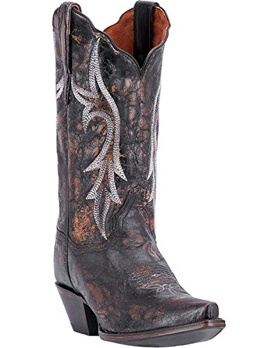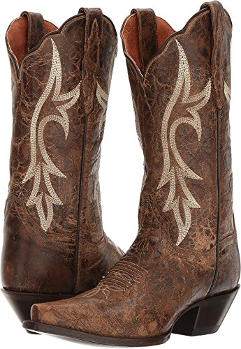 Product DescriptionDan Post Beautiful Distressed Brown Cowgirl boot will have you looking like a "knockout" Supple brown leather ground offers classic construction. Cushioned leather insoles and soft leather lining.0