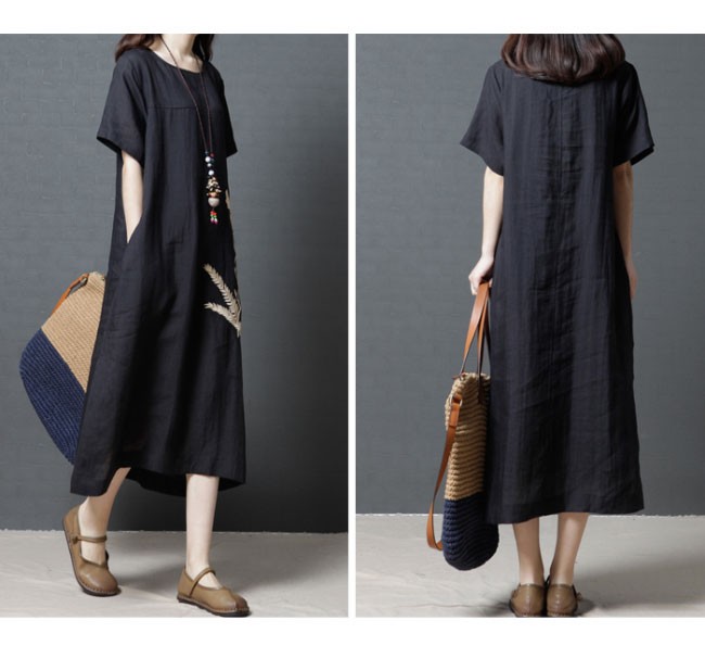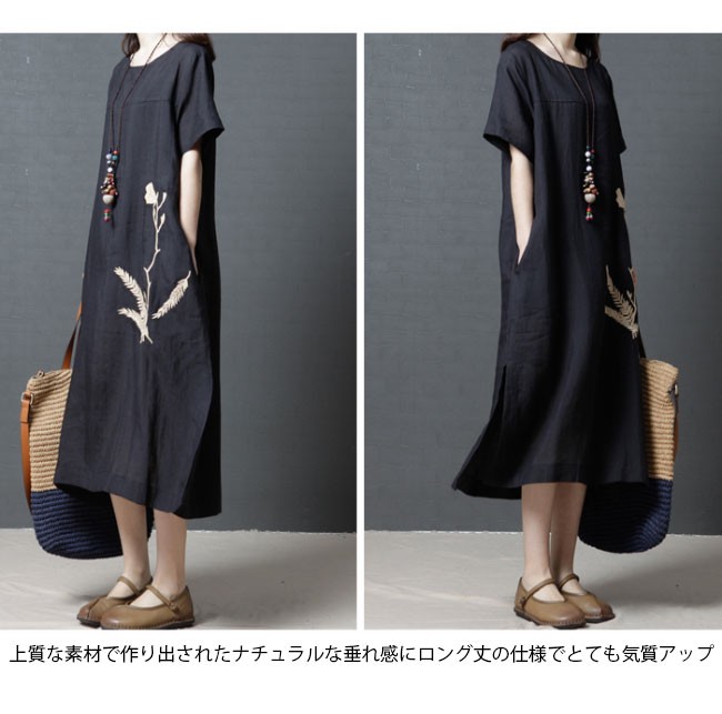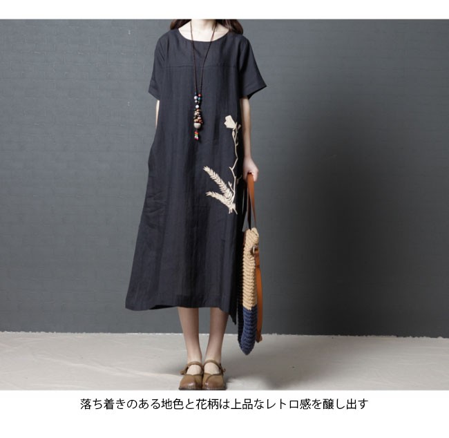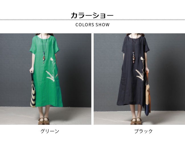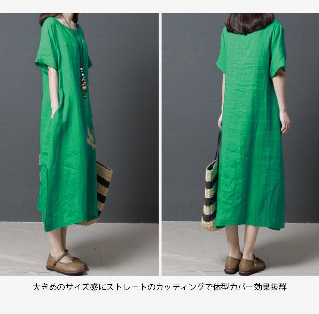 半袖ワンピース 体型カバー レディース リネン ロングワンピ 丸襟 ゆったり 半袖 ワンピース カジュアル 大きいサイズ マキシ丈ワンピースレディース用のワンピースが登場吸湿性・通気性に優れた麻混紡素材を厳選、夏に爽やかな肌触りをもたらすゆったりとしたシルエットに半袖の仕様でさらなる解放感たっぷりの着心地大きめのサイズ感にストレートのカッティングで体型カバー効果抜群落ち着きのある地色と花柄は上品なレトロ感を醸し出す上質な素材で作り出されたナチュラルな垂れ感にロング丈の仕様でとても気質アップカラー:グリーン ブラック素材 麻混紡サイズ(cm) M L XL 2XLM 総丈113 バスト98 肩幅38L 総丈114 バスト102 肩幅39XL 総丈115 バスト106 肩幅402XL 総丈116 バスト110 肩幅41ご注意:※サイズは平置きサイズです。素人採寸ですので、若干の誤差がございます、ご了承ください。