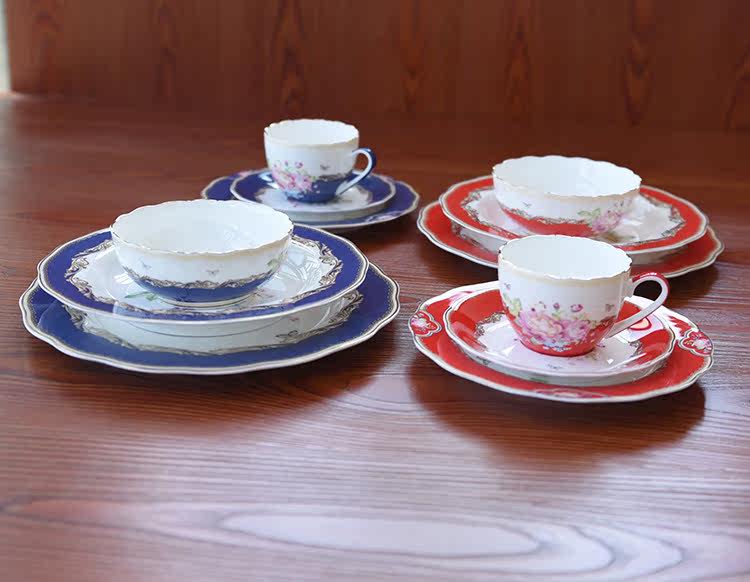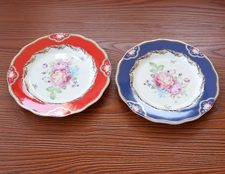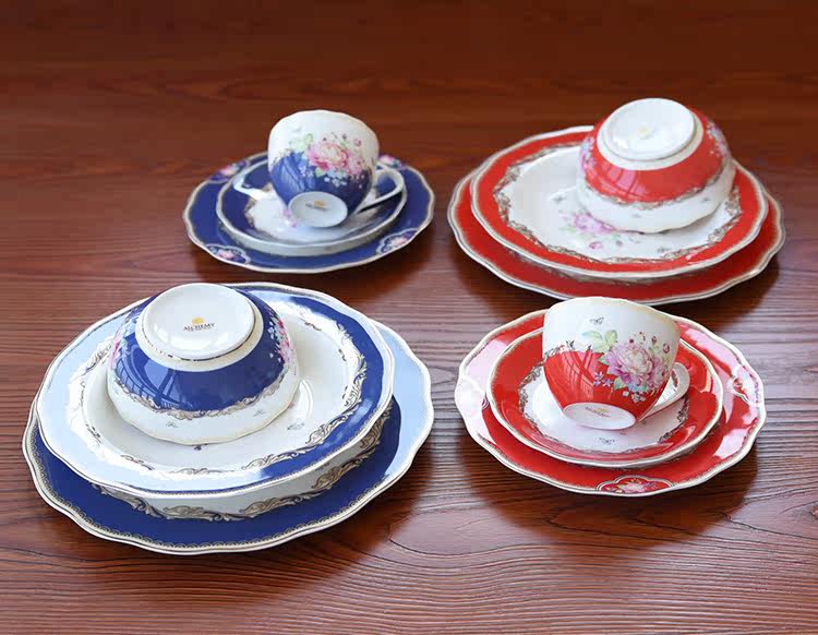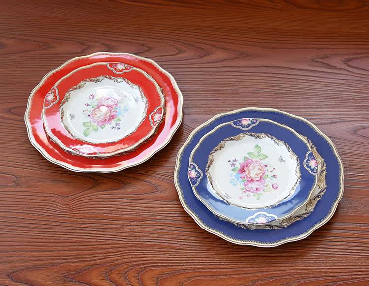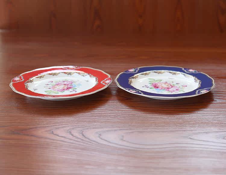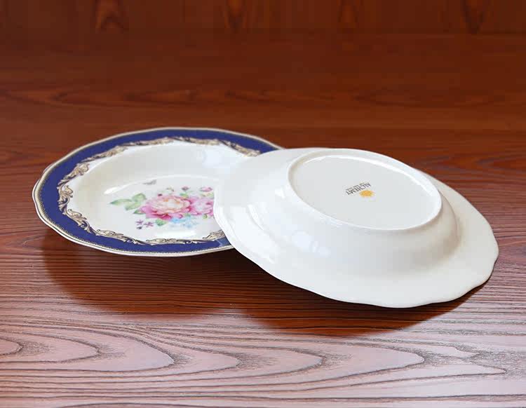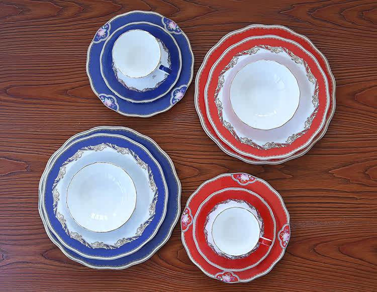 出口英国婚庆骨瓷餐具餐盘 结婚碗碟套装骨瓷金边餐具 陶瓷盘