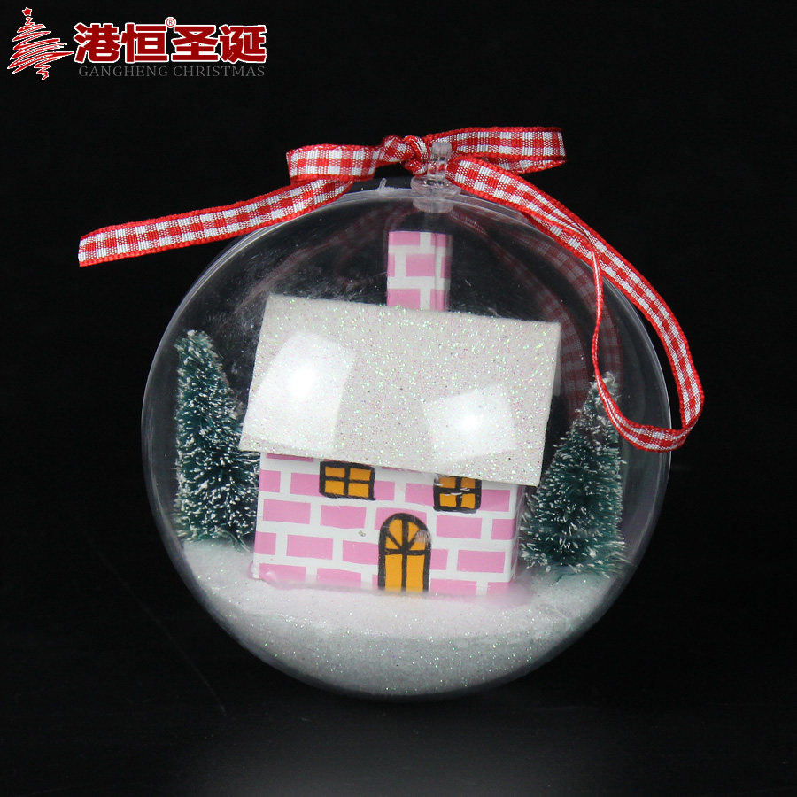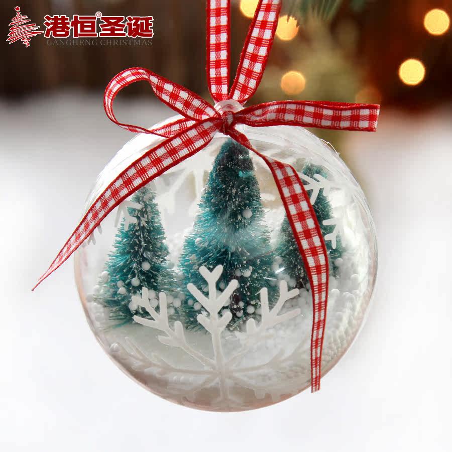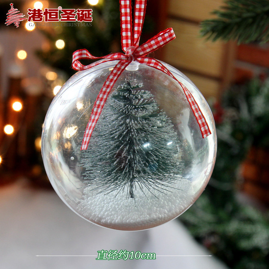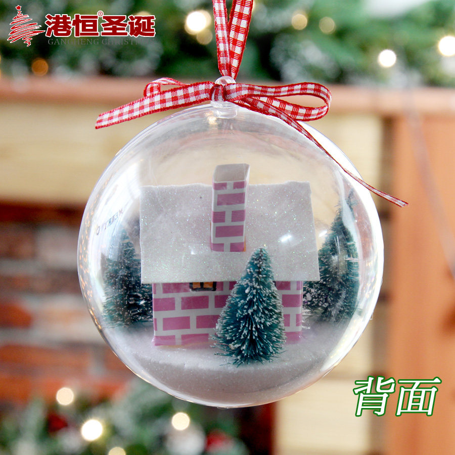 港恒8cm10cm透明球 开合内景透明装饰圣诞球 精致内置场景球