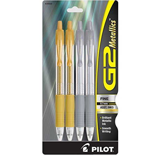 Pilot G2 Metallics Gel Roller Pens, Fine Point, Gold/Silver Inks, 4-Pack (34423)