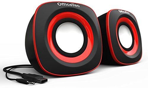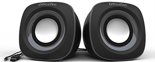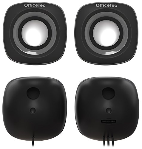 USB powered speaker system with 3.5mm audio input. Adjustable volume dial on rear of speaker.