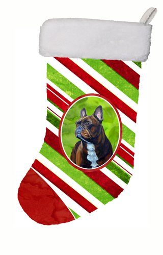 Caroline's Treasures LH9250-CS French Bulldog Candy Cane Holiday Christmas Stocking, 11 x 18", Multicolor