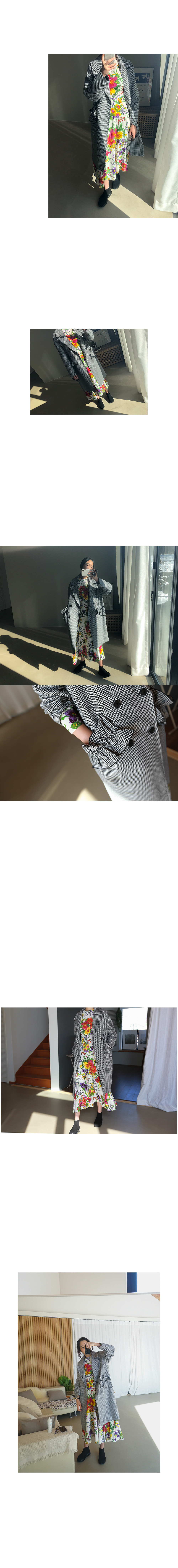 잔잔한 글렌체크에 프릴포켓의 디테일을 더한 코트입니다 ^^ 전체적으로 라인이 들어가 있지않고 툭 하고 떨어지는 핏으로 입는 디자인인데요, 무심하게 떨어지는 핏이 깔끔하고 멋스럽네요. 은근 오버핏이라 입었을때 여리여리한 무드도 좋았고요, 무엇보다 독특하면서도 여성스러운 포켓이 포인트가 되어 이너로 원피스를 코디하셔도매끄럽게 연출이 되어 활용도가 있더라구요. 물론 미니멀하게 심플한 디자인을 매치하셔도 아우터가 과하지 않은 포인트가 되어 센스있는 코디를 완성하실수 있을것 같습니다 :) 미니멀룩에도 충분히 함께 하실수 있는 제품이에요!