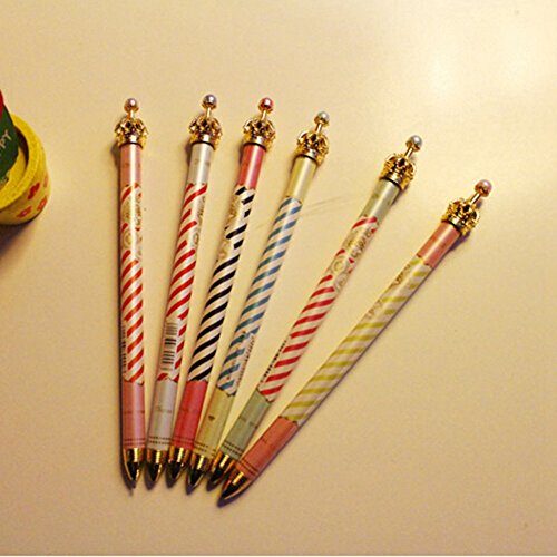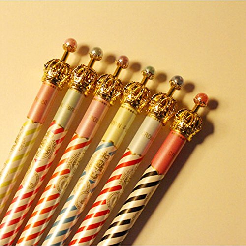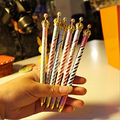 KitMax (TM) Pack of 6 Pcs 0.7mm Cute Cool Novelty Golden Crown Decor Ballpoint Pen Office School Supplies Students Children Gift (Color May Vary)