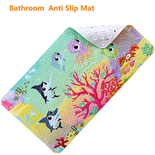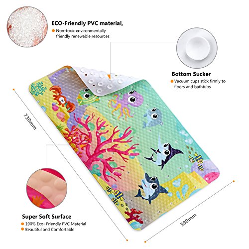 Passed SGS Certificate Non Slip Bathroom Mat With Super Soft Surface Sturdy Suction Cup Construction Anti-Bacterial Bathtub Mat Size: 39cm x 71cm ( No. Two seabed world )
