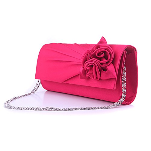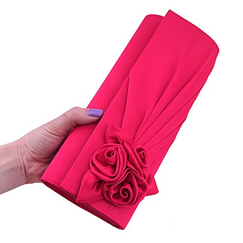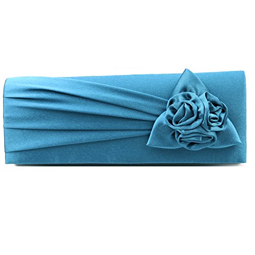 ETIAL Womens Satin Pleated Big Flower Evening Party Clutch Bag