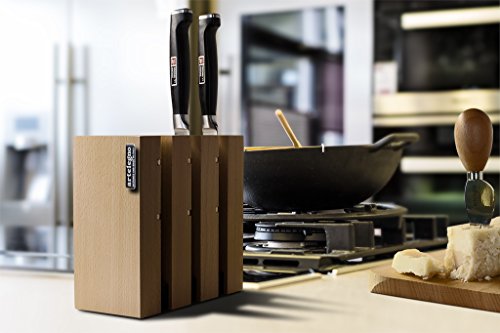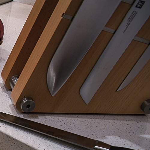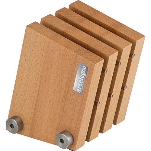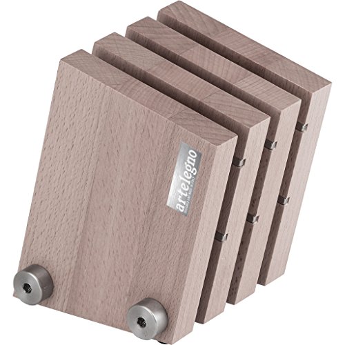 Artelegno Magnetic Knife Block Solid Beech Wood 4 Panel, Luxurious Italian Milano Collection by Master Craftsmen Displays up to 9 High-End Knives Elegantly, Eco-friendly, Natural Finish