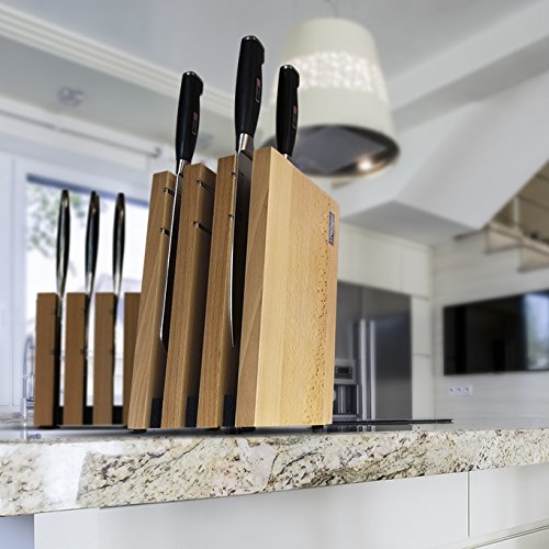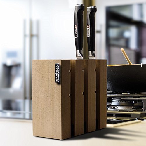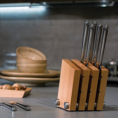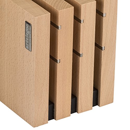 Artelegno Steak Knife Block Solid Beech Wood Magnetic, Luxurious Italian Milano Collection by Master Craftsmen Displays up to 9 High-End Knives Elegantly, Eco-friendly, Natural Finish