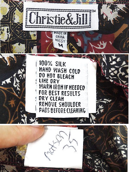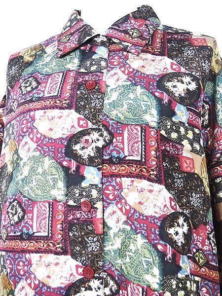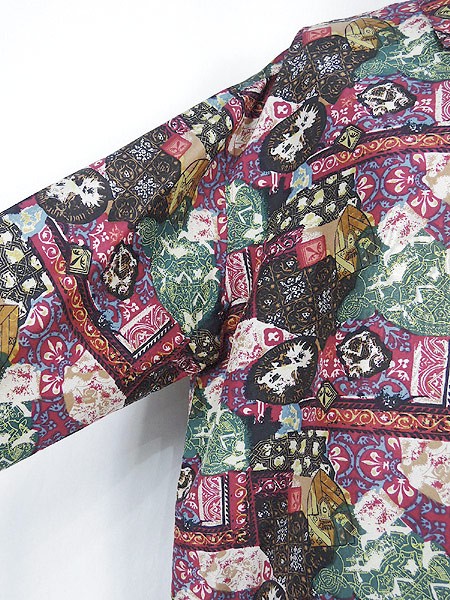 Ladies ブランド- カラーピンクベース メール便不可 コンディション★★★ 素材シルク 表記サイズM 実寸サイズ 着丈 74 cm 身幅 59 cm 肩幅 52 cm 袖丈 54 cm ※ウエスト・ヒップ以外は平置き採寸
