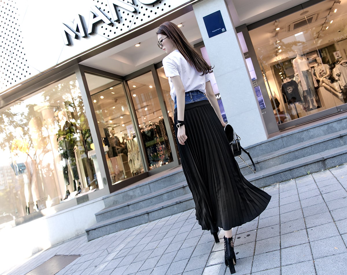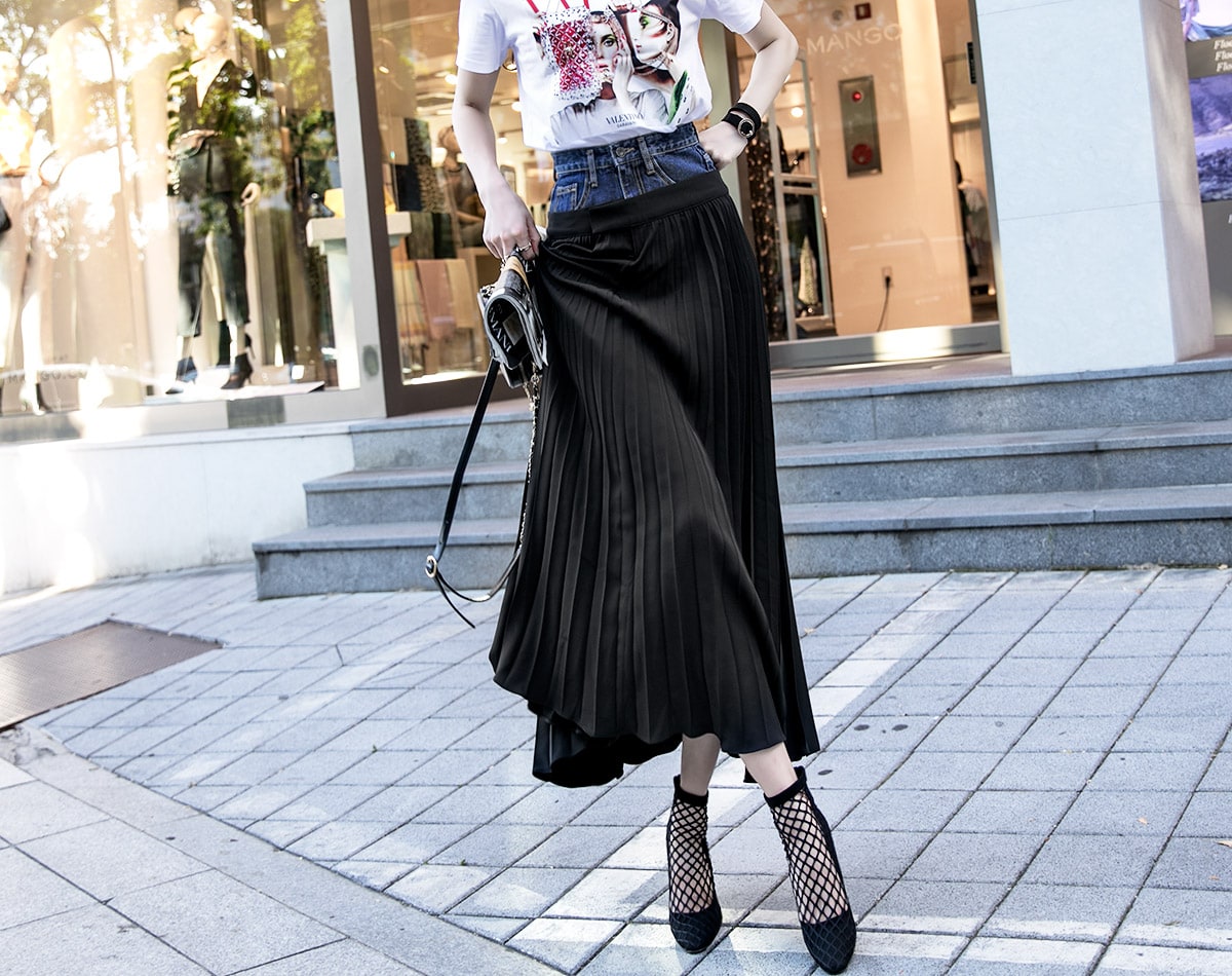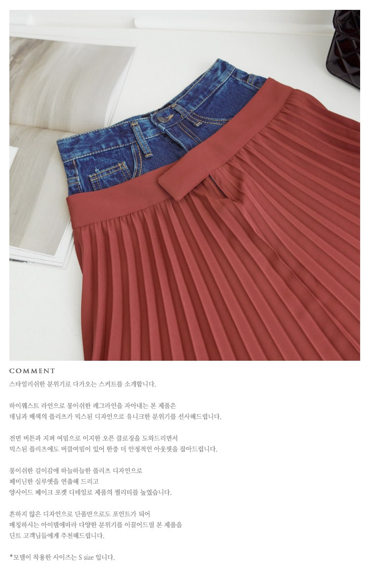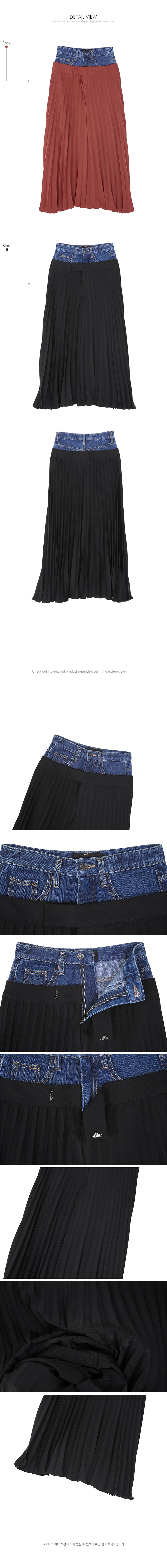 SK1761 데님 레이어드 플리츠 라인 스커트 Black
