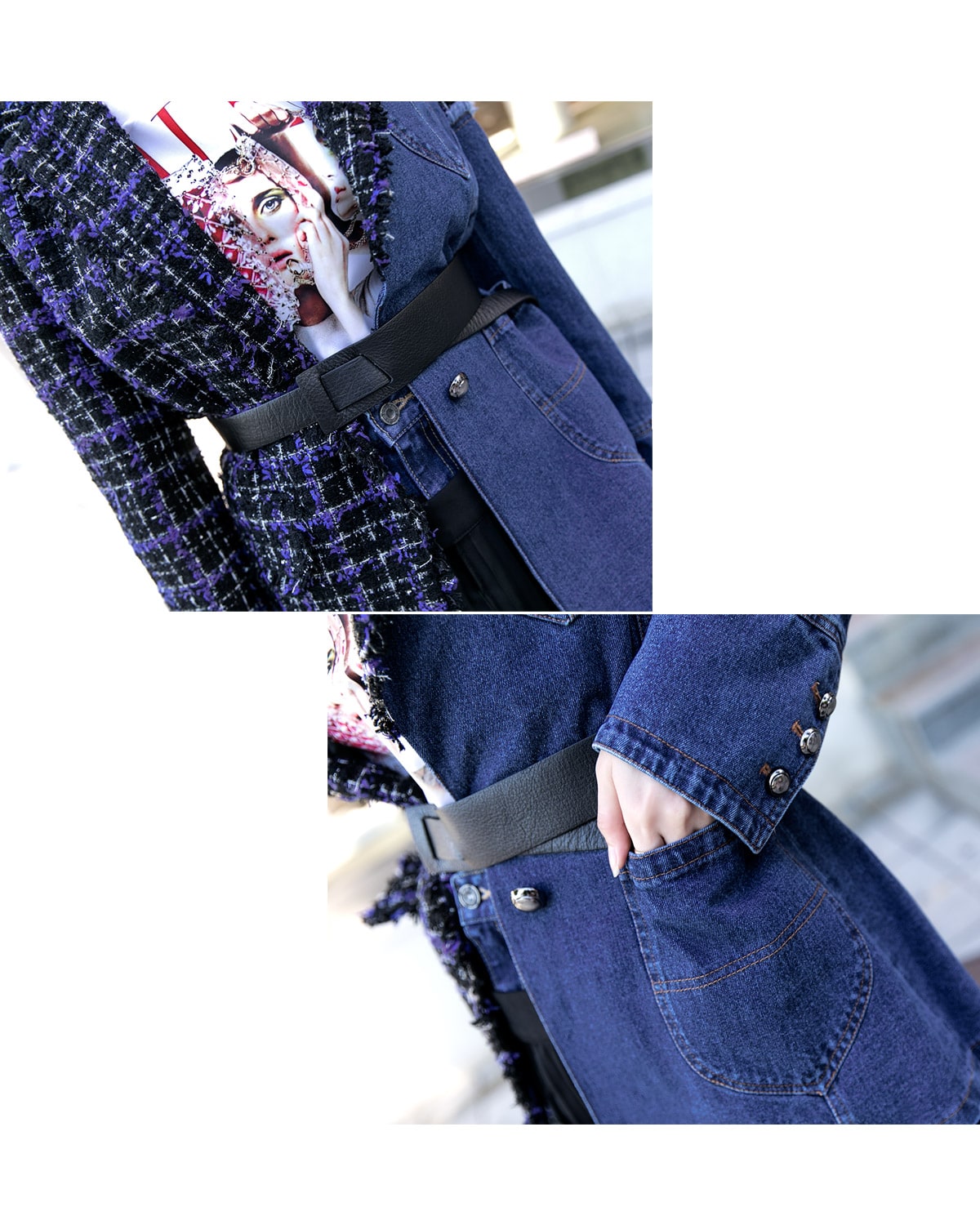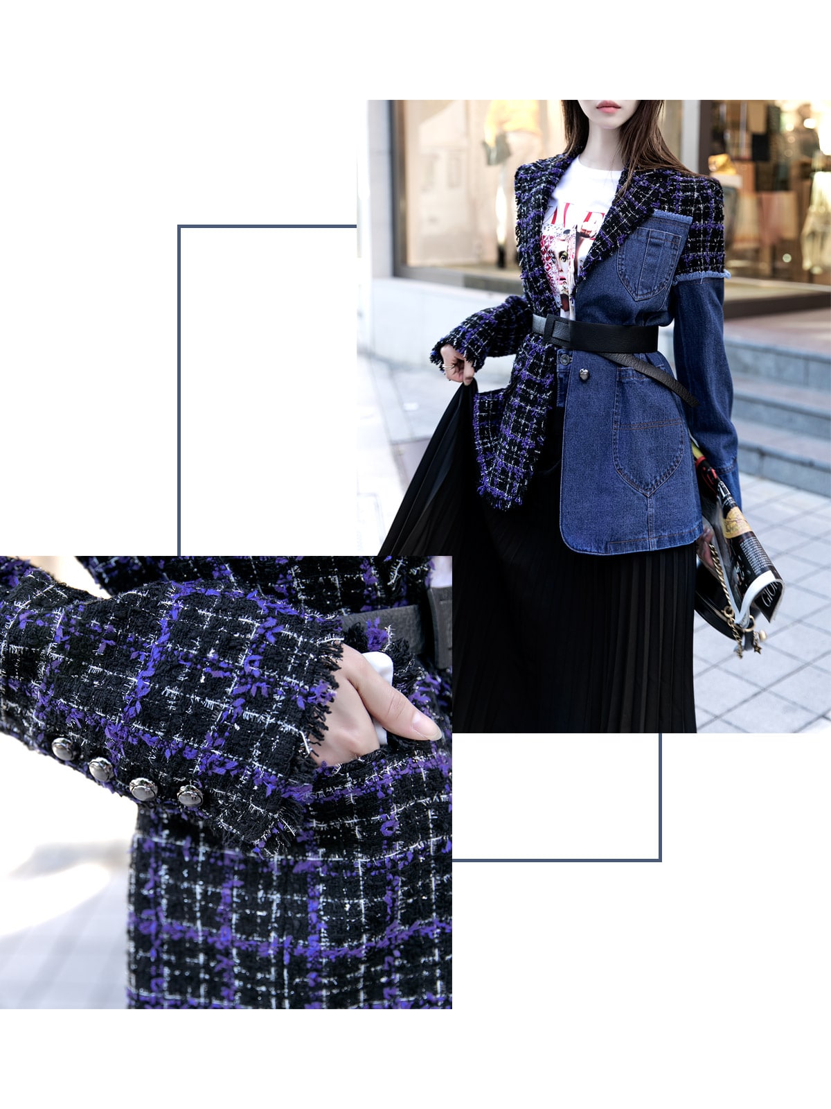 J-5007 하프 트위드 데님 자켓 Blue mix