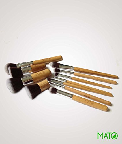 - Title : Mato 11 pcs Wood Makeup Brush Kit - Cosmetics Kabuki Powder Foundation Blusher - Bamboo Handle Makeup Brushes with Bag