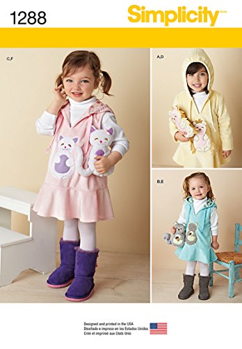-. Feature : SIMPLICITY 1288 SEWING PATTERN / TODDLERS' FLEECE DRESS OR JUMPER AND 7 1/2" STUFFED ANIMALS / SIZE 1/2 - 4 / LONG SLEEVE DRESS WITH HEDGEHOG, JUMPER WITH CAT OR SQUIRREL