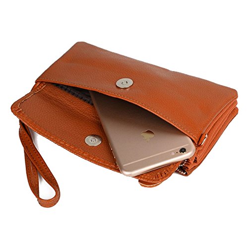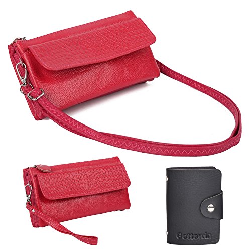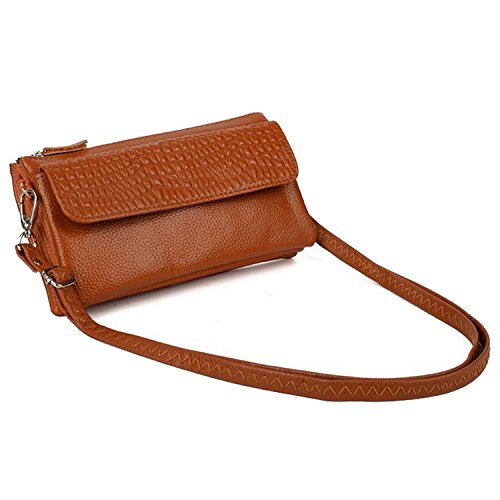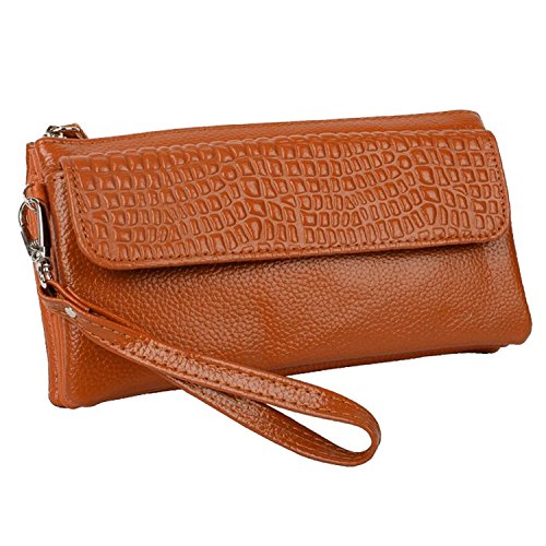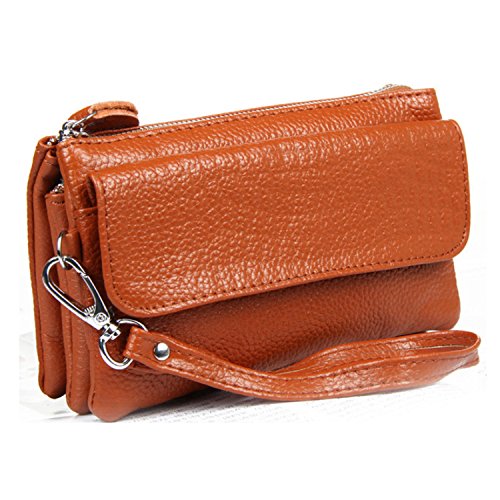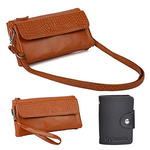 Gottowin Women's Leather Purse Wallet Clutch Handbag Cross-body Bag Organizer w/ Wrist Strap +Card Holder (7.7-Inch , fit iPhone 6 / 6S, Brown)