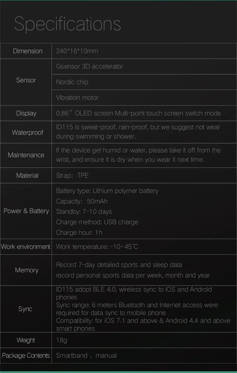 Model:ID115 cicret ID107 ID 107 PK fitbits
