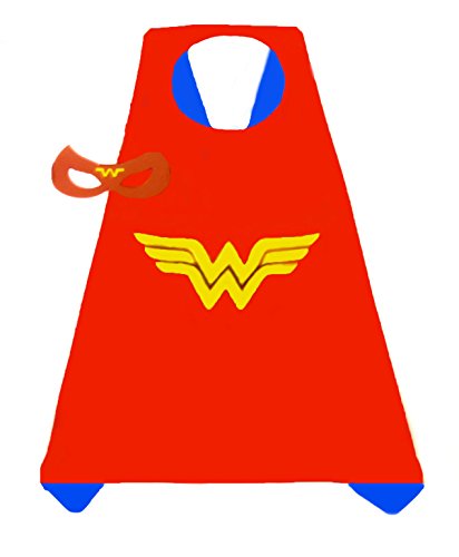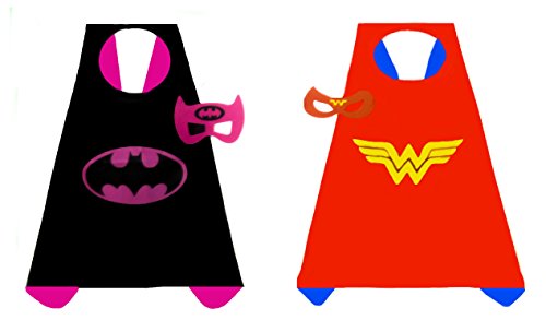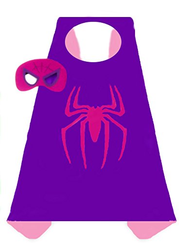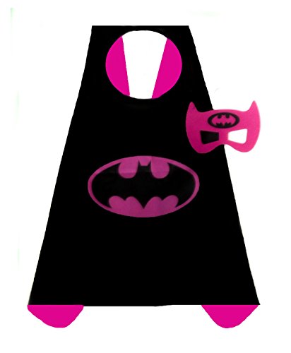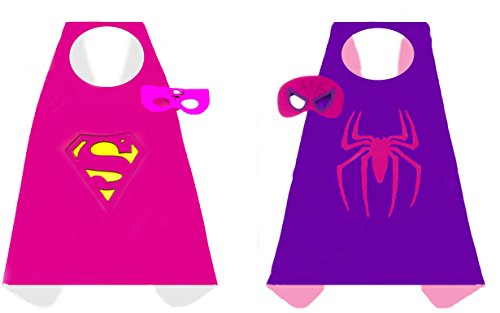 -. Brand : Generic -. Color : Pink and Silver: Red and Blue: Purple and Pink: Black and Pink -. Department : girls -. Feature : 100 PERCENT GUARANTEE - We guarantee a quality product or your money back. / 4 GIRLS SATIN SUPERHERO COSTUMES - Supergirl, Wonderwoman, Spidergirl, and Batgirl. / PERFECT FOR GIFTING - Good for holidays, birthdays and pretend playing in general, giving hours of pleasure to your children. / DURABLE AND REVERSABLE - With velcro fasteners these Superhero costumes can be put on and taken off with ease. / PERECT FOR CHILDREN 3 TO 10 YEARS OLD - Capes 27 inches by 27 inches. -. Label : China -. Manufacturer : China -. PackageQuantity : 4 -. ProductGroup : Apparel -. ProductTypeName : CHILDRENS_COSTUME -. Publisher : China -. Size : 27" x 27" -. Studio : China -. Title : 4 pack Satin Superhero Costumes with Capes and Masks (Girls) -. UPC : 691054981027