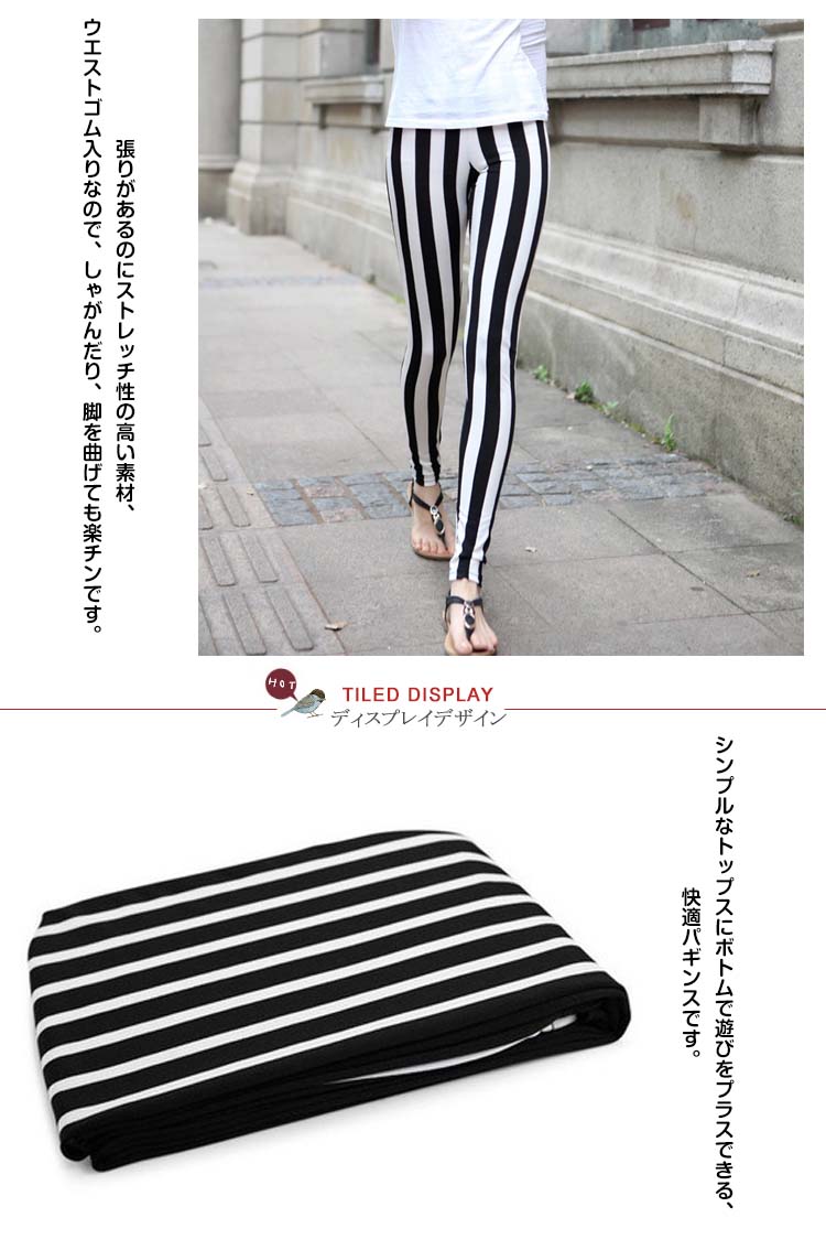 | しなやかストレッチのプリントパギンス。絶妙なピッチのストライプ柄に、柔らかい生地で伸縮性があり肌触り抜群。心地よく身体にフィットするストレッチ性を保ちつつ、デザイン性を強化。SからLLまでの4サイズ展開でぴったり履きたい方、ゆとりを持って履きたい方など履き心地に合わせてお選びいただけます。張りがあるのにストレッチ性の高い素材、ウエストゴム入りなので、しゃがんだり、脚を曲げても楽チンです。シンプルなトップスにボトムで遊びをプラスできる、快適パギンスです。 | |