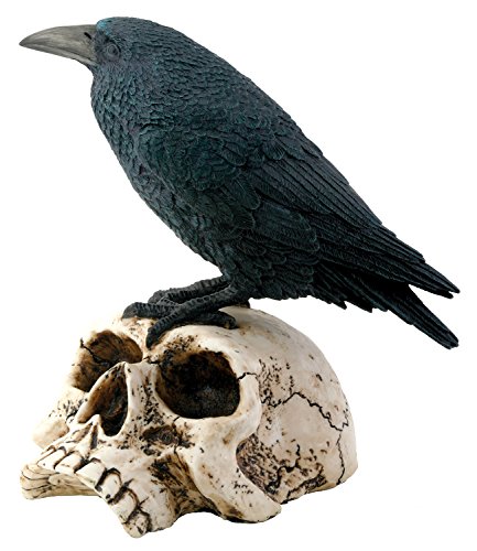 Raven on Skull Collectible Bird Crow Skeleton Figurine Statue Model
