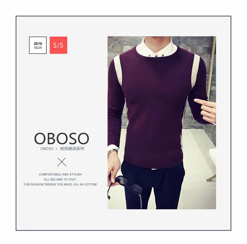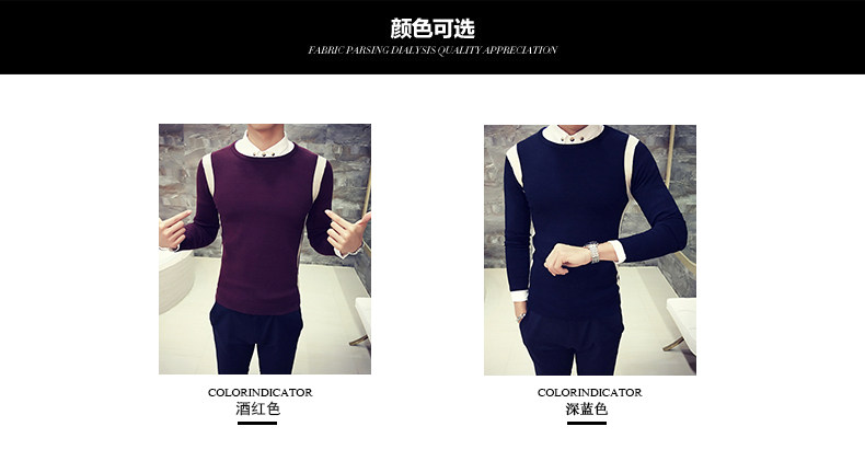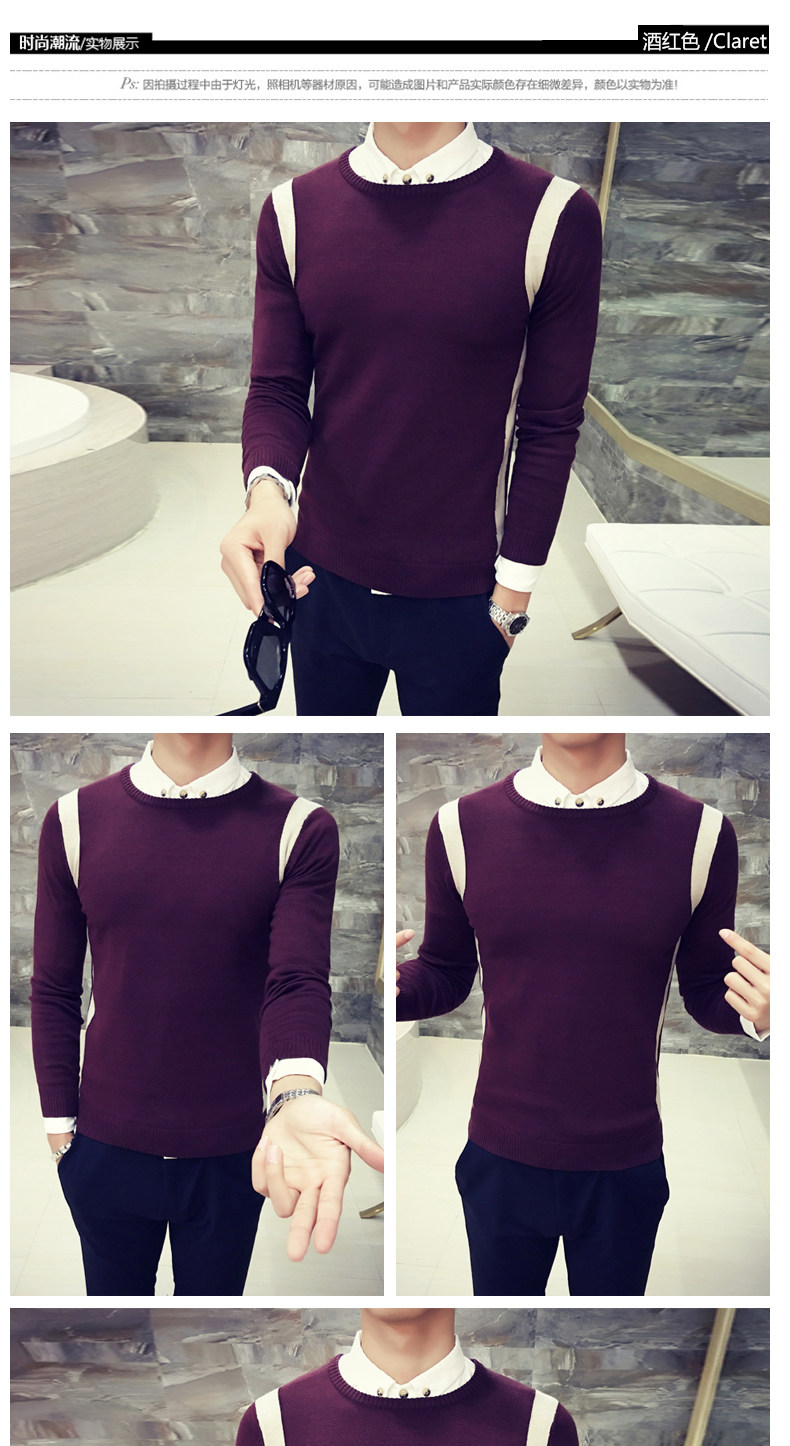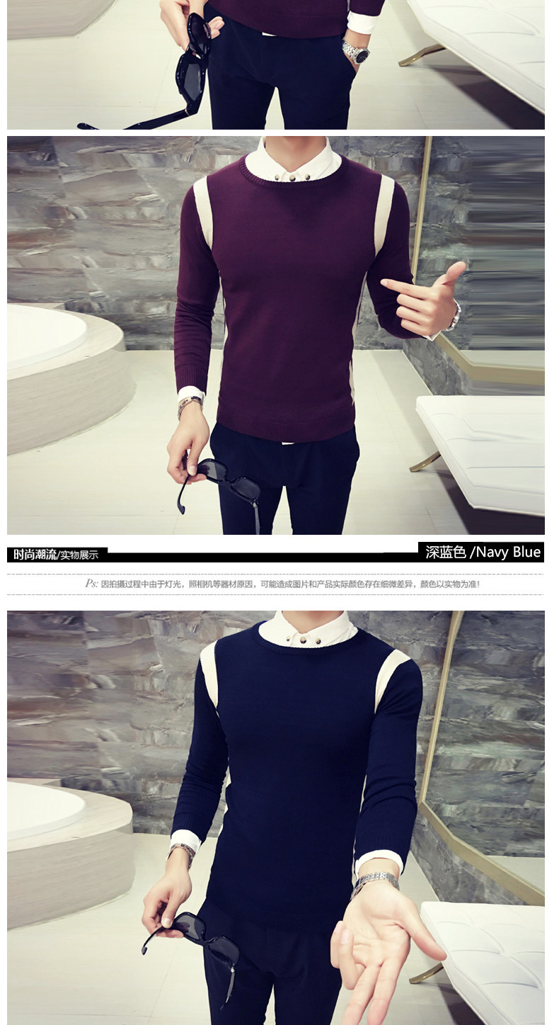 秋季韩版修身型男士针织衫圆领套头毛线衣潮时尚撞色学生毛衣