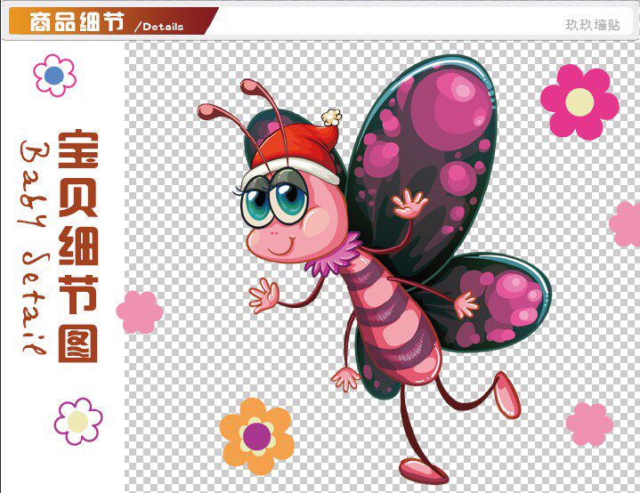墙贴幼儿园小学卡通动物贴纸七星瓢虫毛毛虫昆虫蜻蜓蚂蚁花朵贴画