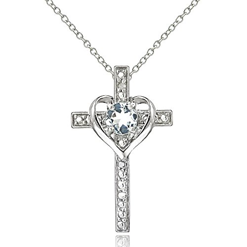 -. Title : Sterling Silver Aquamarine Cross Heart Pendant Necklace