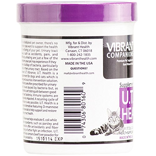 PURRFECT FOR YOUR 4-LEGGED FRIENDS: U.T. Health's formula is based off of Vibrant Health's U.T. Vibrance and has been adapted for use in dogs and cats. Cats and smaller dogs are particularly prone to infections. Antioxidant-rich plants such as parsley, goldenrod, and dandelion support and restore urinary tract health by promoting urination and cleansing internally.