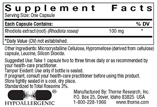 -. Binding : Health and Beauty -. Brand : Thorne Research -. Label : Thorne Research -. Manufacturer : Thorne Research -. ProductGroup : Health and Beauty -. ProductTypeName : HEALTH_PERSONAL_CARE -. Publisher : Thorne Research -. Studio : Thorne Research -. Title : THORNE RESEARCH - Rhodiola Rosea - 60ct Vegetarian Capsules [Health and Beauty]