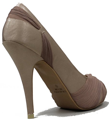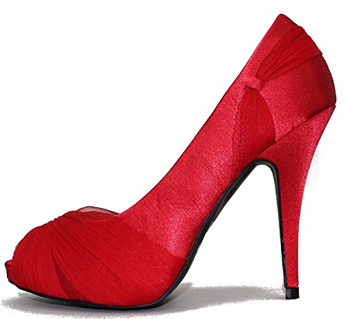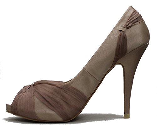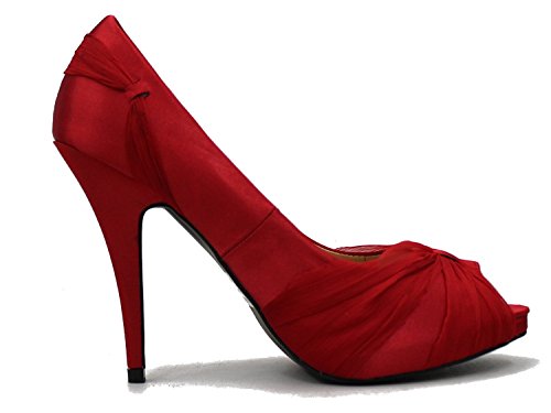 Bonnibel Women's Satin Peep Toe Dress Ruched Stiletto Heeled Sandal Shoe Pumps