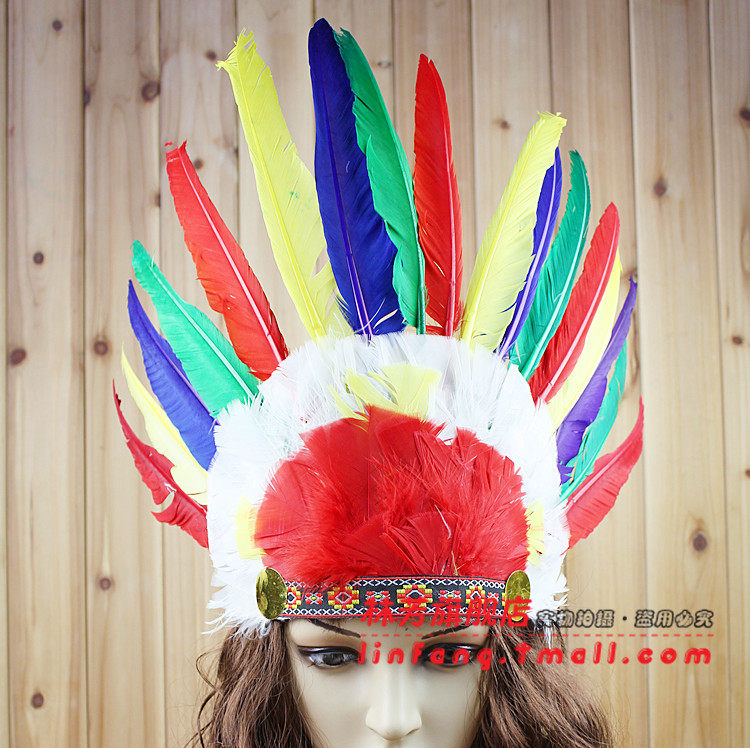 Size: suitable for adults and children, a single feather headdress is about 20CM, total height of about 34CM, about 54CM wide flat bottom