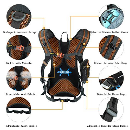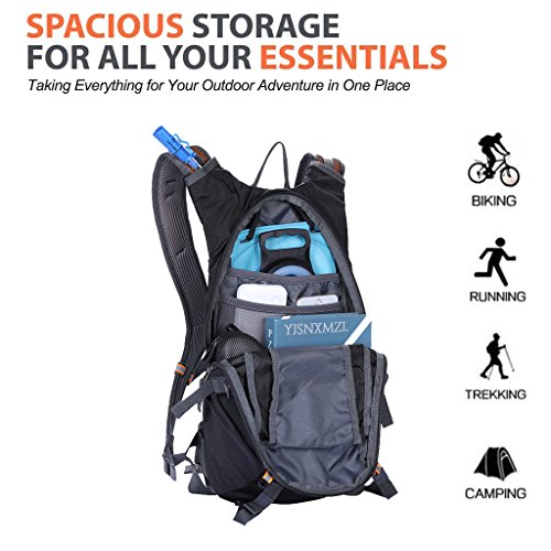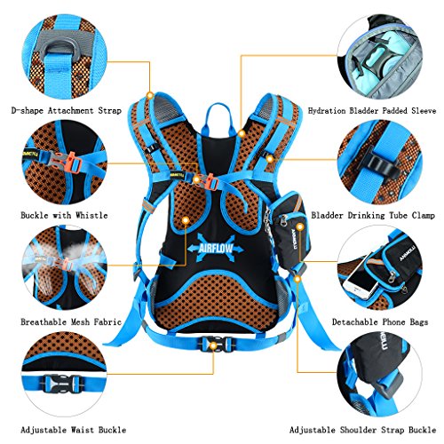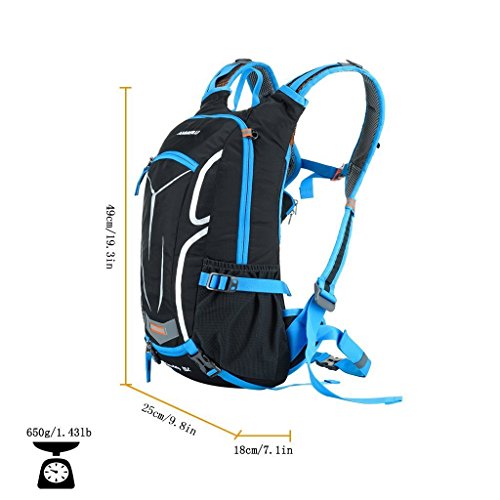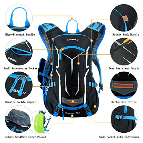 -. Feature : DURABLE & REFLECTIVE: Our large cycling backpack is made from high quality water-resistant and tear-resistant nylon fabric, provides strengthen, durable and long-lasting performance with minimal weight. Reflective strips help with night time visibility, enhancing safety while cycling at night. / MULTIPLE STORAGE COMPARTMENT: Design with plenty of storage options, includes a large compartment to store your belongings, such as laptop, ipads, clothes, snacks etc. A separate section for hydration bladder, 2 divided mesh sleeve pockets to store wallet or power bank. A phone pocket on the shoulder strap to keep your cellphone secure and easily accessible, great for listening to music when riding. / REPLACEABLE 2L HYDRATION BLADDER: Comes with 2L water bladder, made of non-toxic TPU material and it's BPA-free, FDA-approved. Our water reservoir features a quick release tube, soft mouthpiece with protective cap & sliding shutoff valve. With an extra-wide diameter of 3.15inch opening, makes it easy to clean and even add ice cubes inside. Keeps water cold and has an attached straw that threads through the shoulder of the backpack, no longer stop riding to take a drink now! / BREATHABLE & COMFORTABLE : Thick foam pads create air flow channels which allow cool air to pass between the bag and your back. Mesh shoulder straps with plentiful sponge padding help relieve the stress from your shoulder. No longer struggles to keep the backpack on your shoulders because it has a waist and chest strap that is helpful to keep it in place, provides you maximum comfort! / WATERPROOF & CONVENIENCE: Comes with a reliable, durable RAIN COVER, protect anything in the bag in case you are caught in the rain while biking. Built-in a HELMET NET, allows you to carry a helmet around, if you don't wear a helmet while riding bike.