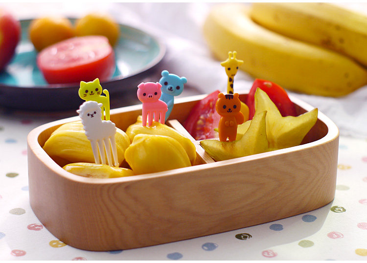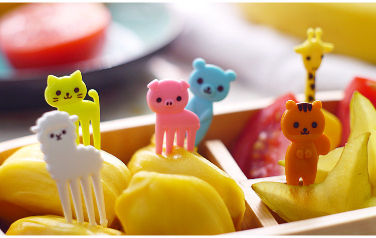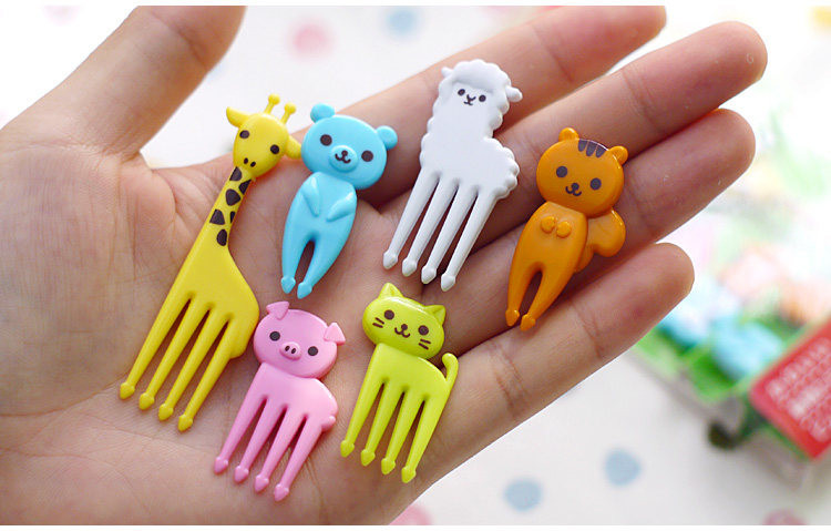 动物造型水果叉,精选造型,绵羊,小猪,小猫,小熊,松鼠,长颈鹿,6个装,萌萌哒,用于装饰水果或便当,激发小朋友的兴趣。