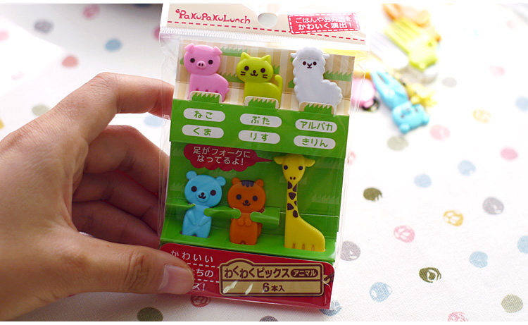新款 出口日本 可爱动物造型水果叉 便当装饰签 儿童水果叉 6个装