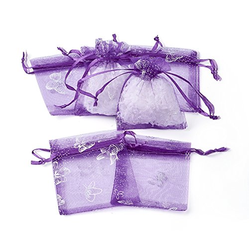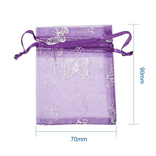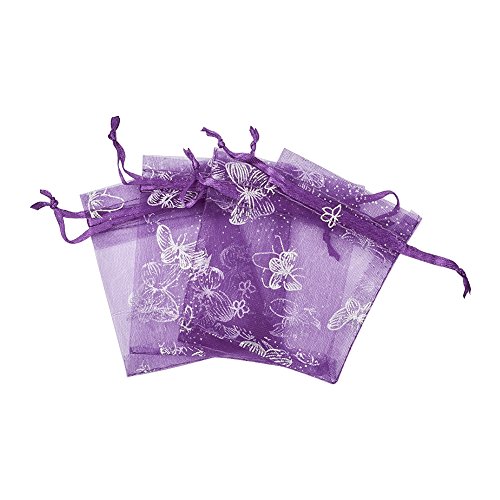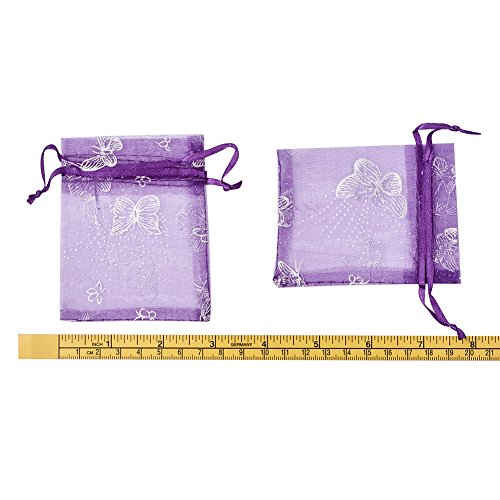 - 100pcs Organza Bags, Drawstring Pouch Favor Bags, Gift Package, Rectangle with Butterfly Pattern, DarkViolet