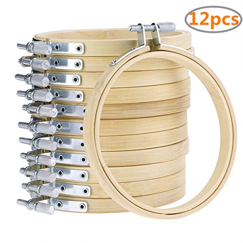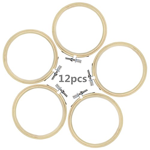 Kosause 4 Inch Round Embroidery Hoop Bulk 12 Pieces Bamboo Circle Cross Stitch Hoop Ring