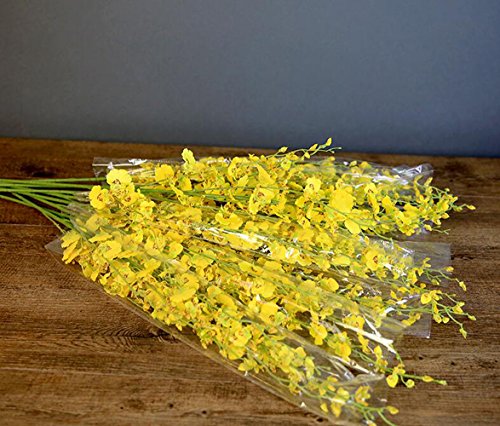 Sunrisee 10 Pieces Artificial Flowers 37.4” Fake Dancing Lady Orchid Butterfly Flower for Wedding Home Office Party Hotel Restaurant Patio Yard Decoration, Yellow