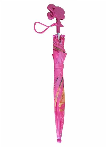 - Feature : Made of 100% polyester / rain rolls right off / Size approx 21.5" L (closed) and 23" diameter (open) / Unique Barbie figure crafted handle