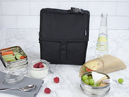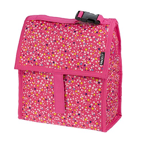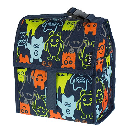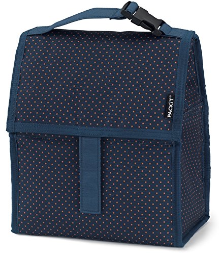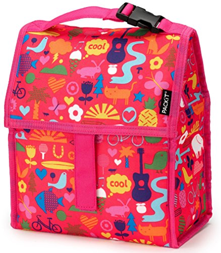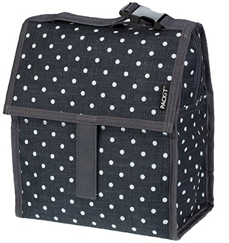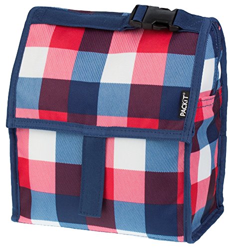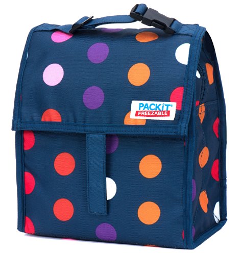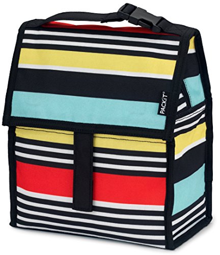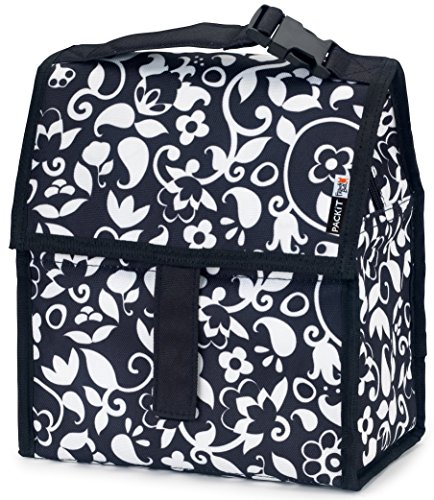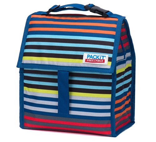PackIt is the first freezable lunch bag that keeps anything you pack cooler, longer. Each PackIt has a patented freezable gel built permanently into its lining and the entire bag freezes to keep contents cool. The gel-lined walls chill a meal and 12 ounce (340ml) drink for up to 10 hours. (Depending on external temperatures). While other bags merely insulate, a frozen PackIt actually creates cold, eliminating the need for melting ice or bulky gel packs. PackIt keeps food cooler five times longer than other coolers which allows you to pack healthy foods such as: yogurt, milk, fruits and veggies. Uneaten food comes home still fresh and goes back into the refrigerator for the next day, which reduces waste and saves you money. Fold the PackIt Freezable Lunch bag flat and store it in the freezer overnight (12 hours) to freeze completely for maximum performance during use. The new zip closure locks in cold, dry air and a buckle handle easily clip onto totes, backpacks or strollers. PackIt products are made from food-safe, nontoxic poly canvas and are PVC, BPA, phthalate and lead free. Simple Care: interior wipes clean, spot clean exterior. Not machine or dishwasher safe. PackIt's Freezable Lunch Bag measures 10 Inch tall, 8 Inch wide and 5 Inch deep while open. When folded, it measures 8 Inch wide, 5 Inch deep and 2 Inch tall for easy storage in the freezer.