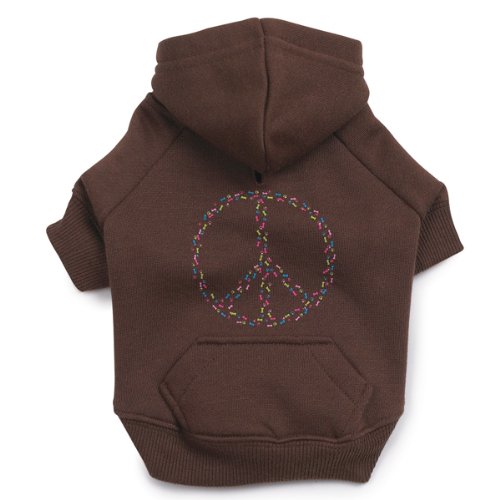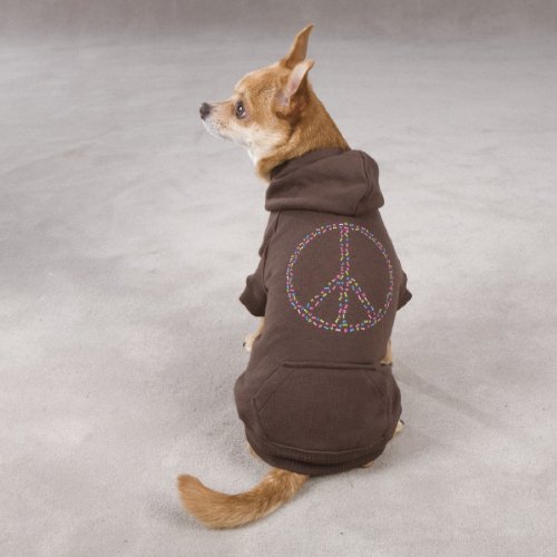Studio : PetEdge Dealer Services* Publisher : PetEdge Dealer Services* Binding : Misc. Product Description Casual Canine peace sign dog hoodie full of charm, this sweatshirt is made of easy care polyester and features a colorful bone and paw peace sign on the back. Kangaroo pouch pockets, super soft fleece lining and leash hole completes the look. High cut belly, ribbed sleeves and waistband provides a stay-dry, cozy fit. It is shipped in a polybag with a hanger and hangtag. Turn garment inside-out before washing to protect design on back. Machine wash cold on a gentle cycle and line dry. Available in brown color and small size. Measures 12-inch length. 0