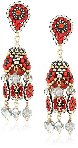 -. Feature : Dramatic earring with allover beading featuring dimensional drops with floral patterning / Items that are handmade may vary in size, shape and color / Made in United States / Red coral 3-D mini flower post earrings / Made in USA